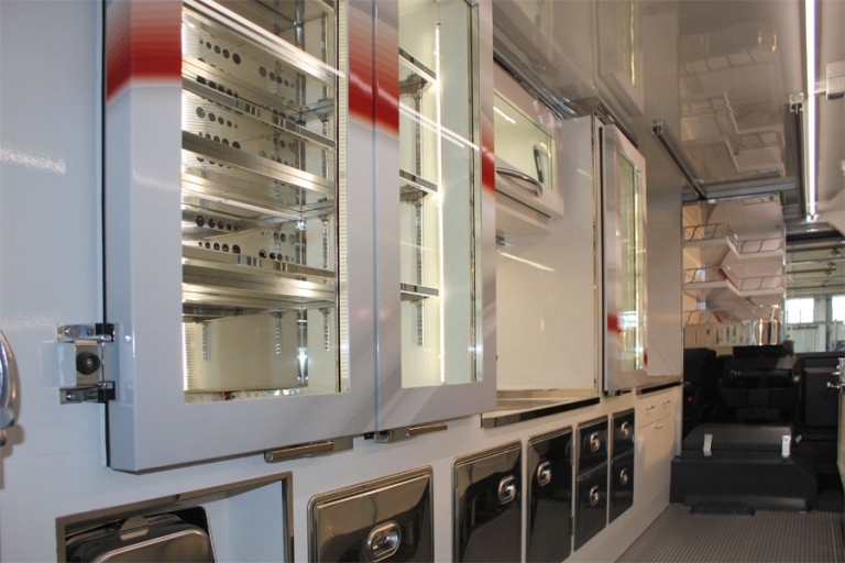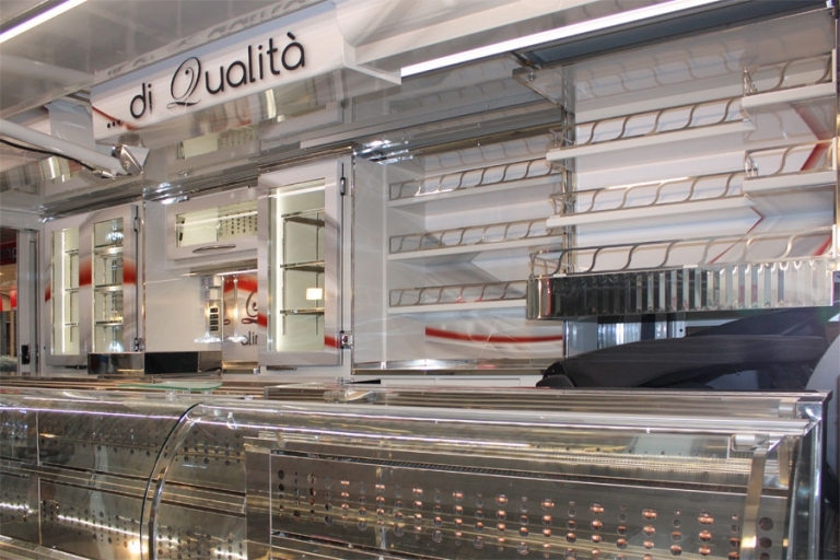 Manufacturing of a 7,5 tons all-in-one mobile shop truck used as a groceries shop to sell cold cuts and cheese.