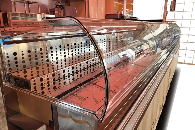 Internal equipment with: sink, refrigerated sales counter with oleodynamic movement, refrigerated cabinets.