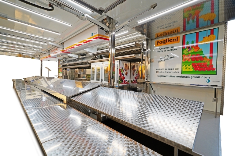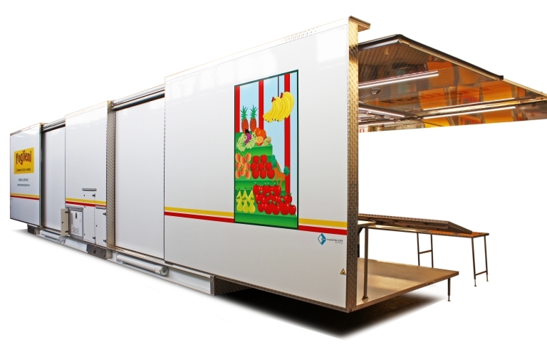 Manufacturing of a C driving licence roll-off mobile shop truck used as a groceries shop to sell vegetables and fruit.