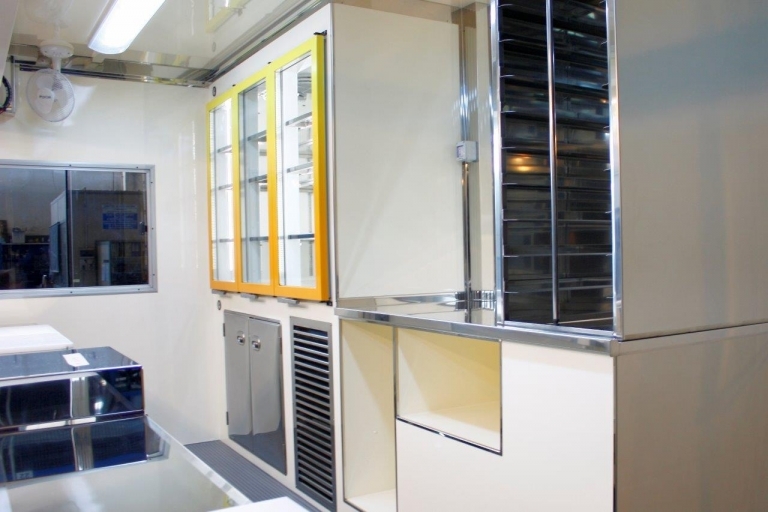 Manufacturing of a trailer mobile shop truck used as a bakery.