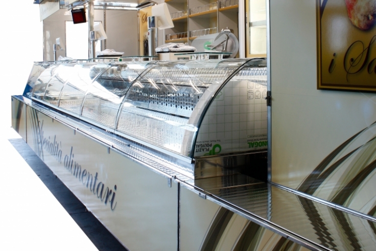 Realización camión tienda con cabina de 12 toneladas utilizado por la venta de embutidos y queso.