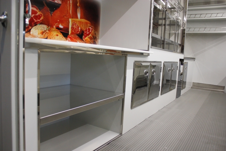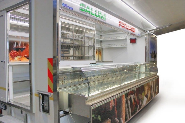 Realización camión tienda con cabina de 8 toneladas utilizado por la venta de embutidos y queso.