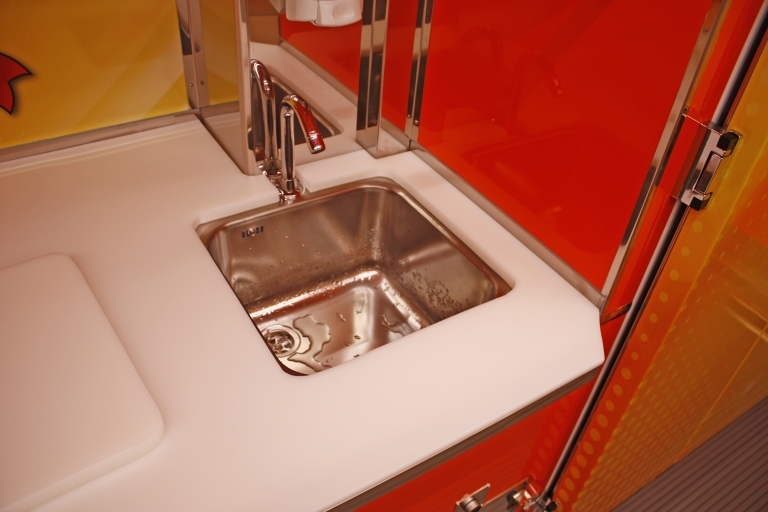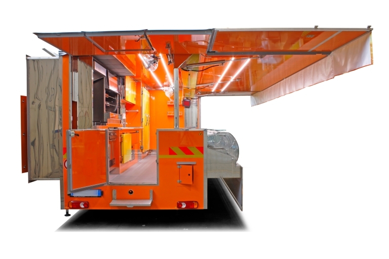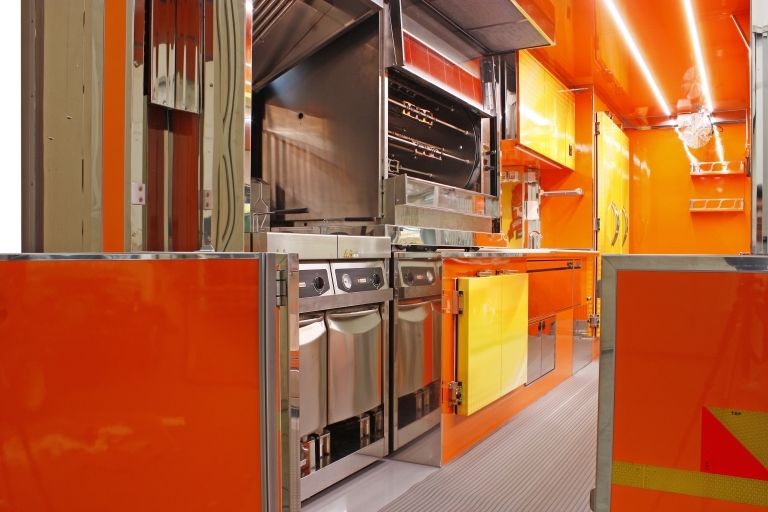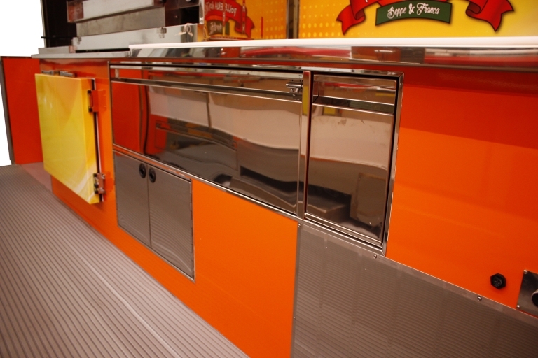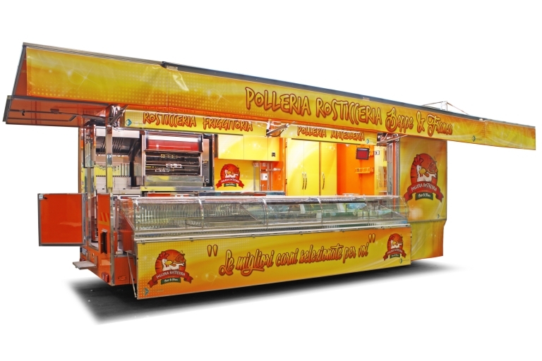 Realización camión tienda con cabina de 12 toneladas utilizado como charcutería.