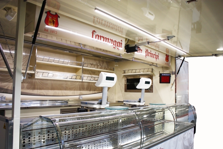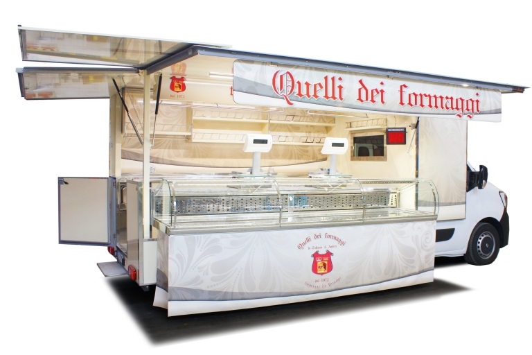 Realización camión tienda con cabina de 3,5 toneladas utilizado por la venta de productos alimentarios.