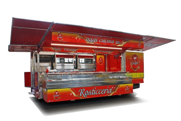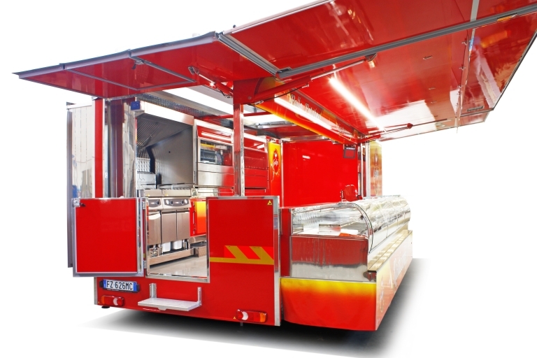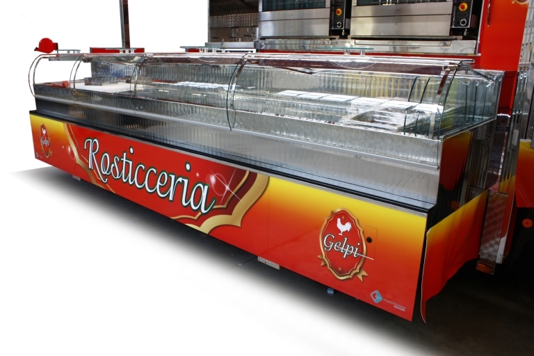 Realización camión tienda con cabina de 12 toneladas utilizado como charcutería.