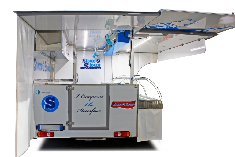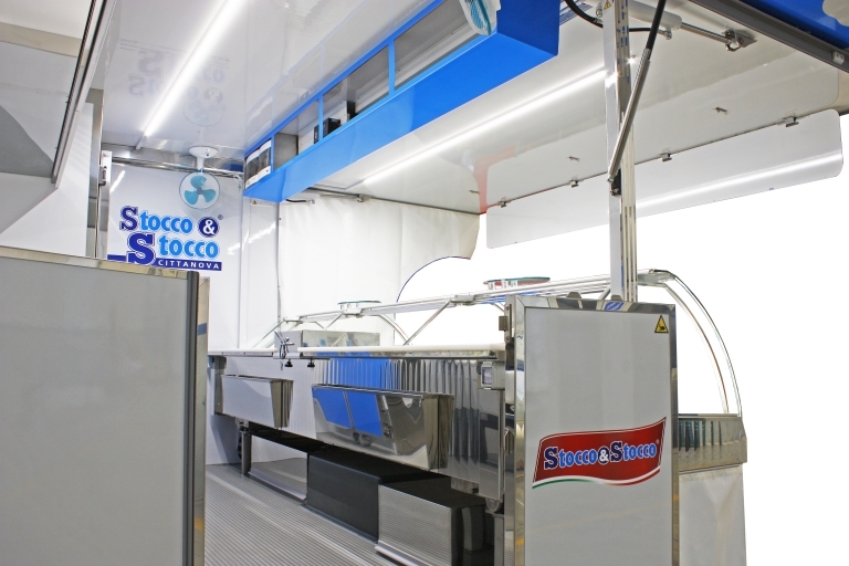 Realización camión tienda con cabina de 3,5 toneladas utilizado como pescadería.