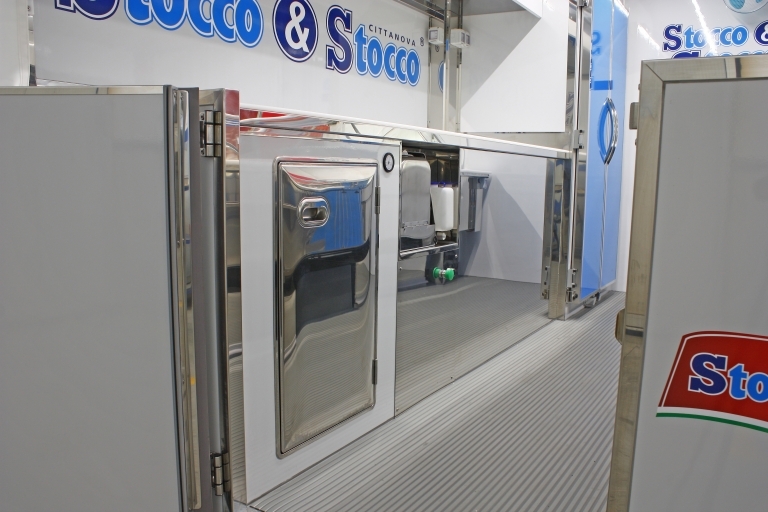 Equipamiento interno con: lavabo, generador eléctrico, banco de venta refrigerado, cámaras refrigeradas.
