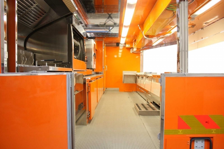 Realización camión tienda con cabina de 12 toneladas utilizado como charcutería.