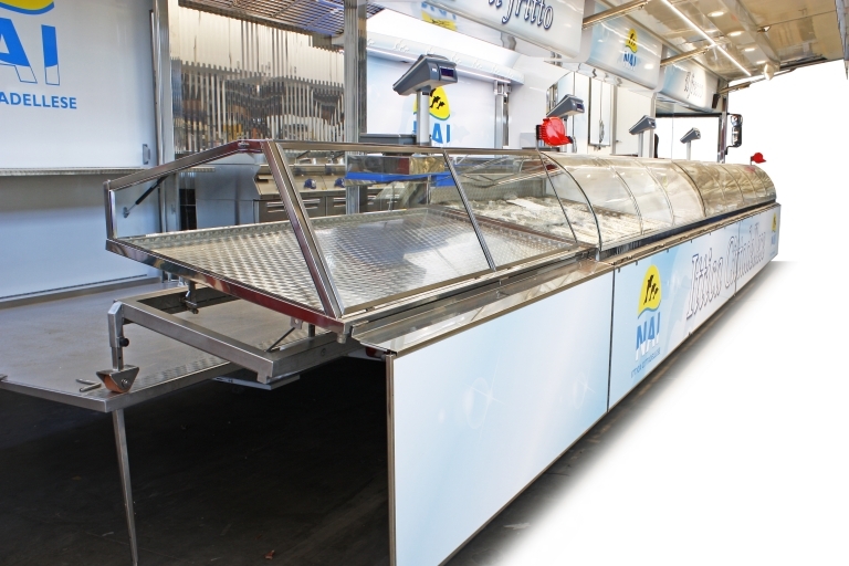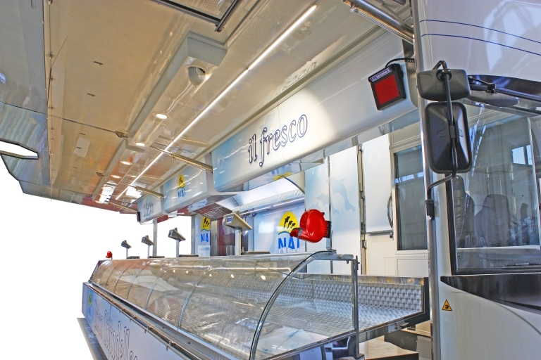 Realización camión tienda integral de 18 toneladas utilizado como pescadería por pescado crudo y cocido.
