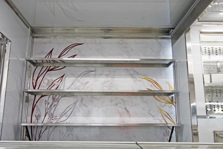 Equipamiento interno con: lavabo, generador eléctrico, banco de venta refrigerado, cámaras refrigeradas, estantería.