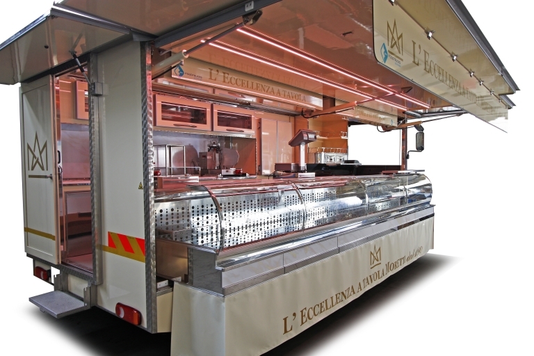 Realización camión tienda integral de 8 toneladas utilizado por la venta de embutidos y queso.