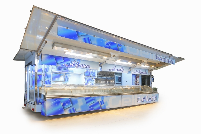 Realización camión tienda integral de 12 toneladas utilizado como pescadería por pescado crudo y cocido.