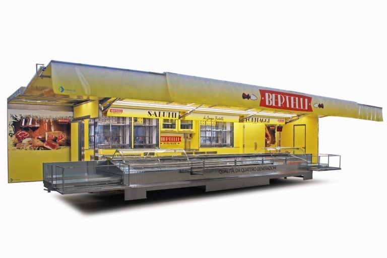 Realización camión tienda extensible, licencia de conducir C utilizado por la venta queso.