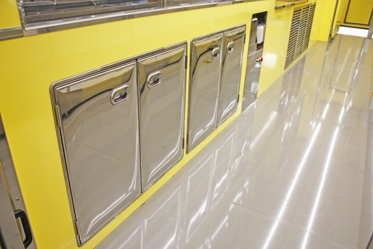 Equipamiento interno con: lavabo, generador eléctrico, banco de venta refrigerado, cámaras refrigeradas.
