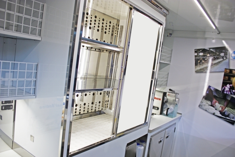 Réalisation camion magasin chassis-cabine de 3,5 tonnes utilisé pour la vente de lait et des fromages.