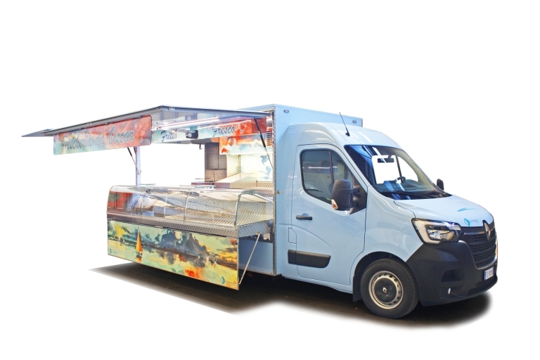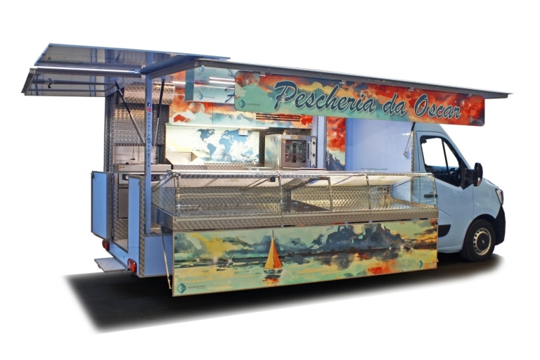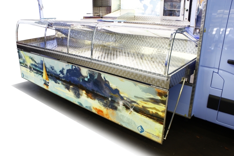 Réalisation camion magasin chassis-cabine de 3,5 tonnes utilisé comme poissonnerie.