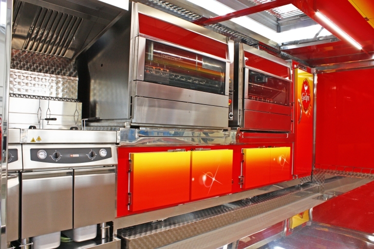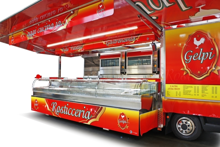 Réalisation camion magasin chassis-cabine de 12 tonnes utilisé comme rôtisserie.
