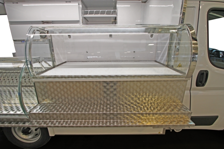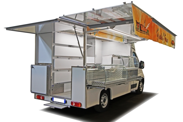 Réalisation camion magasin chassis-cabine de 3,5 tonnes utilisé pour la vente de la porchetta.