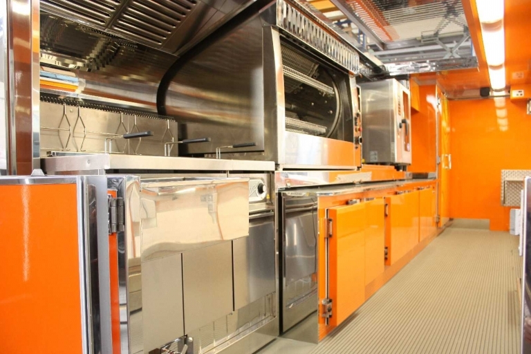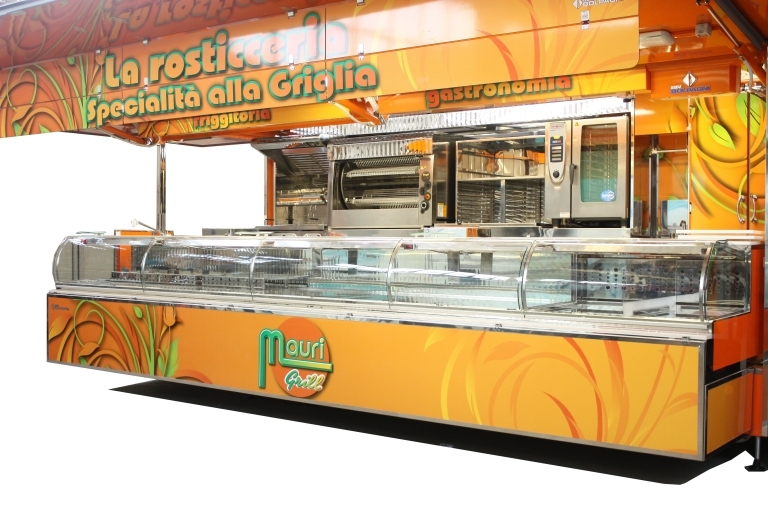 Réalisation camion magasin chassis-cabine de 12 tonnes utilisé comme rôtisserie.