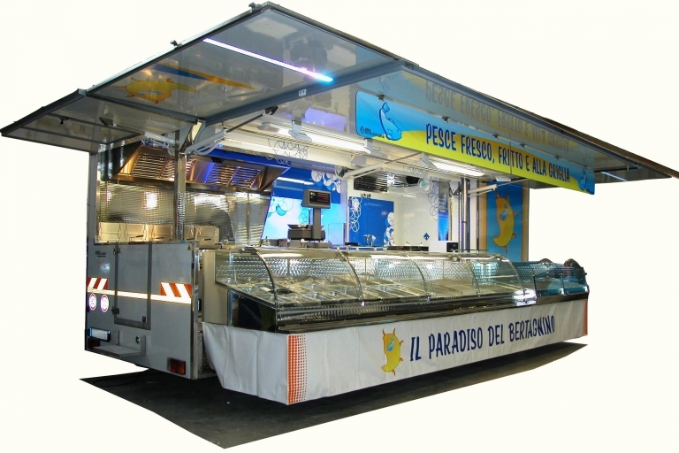 Réalisation camion magasin "Evolution" de 10 tonnes utilisé comme poissonnerie pour poisson cru et cuit.