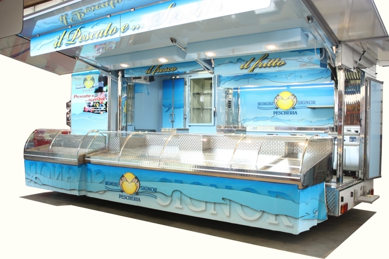 Réalisation camion magasin "Evolution" de 10 tonnes utilisé comme poissonnerie pour poisson cru et cuit.