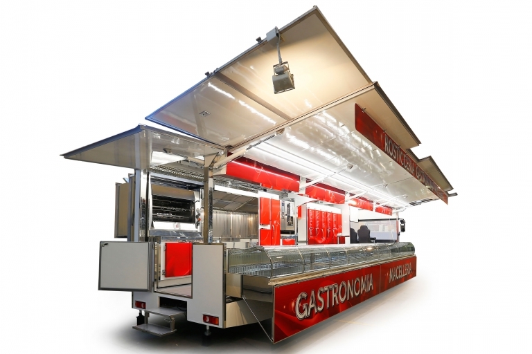 Réalisation camion magasin intégral de 18 tonnes utilisé comme rôtisserie.