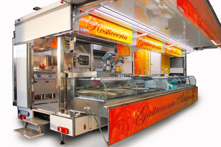 Réalisation camion magasin intégral de 12 tonnes utilisé comme rôtisserie.
