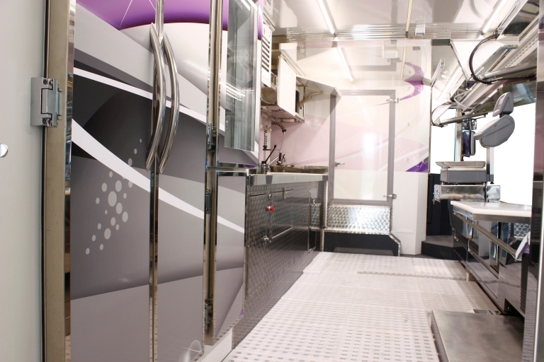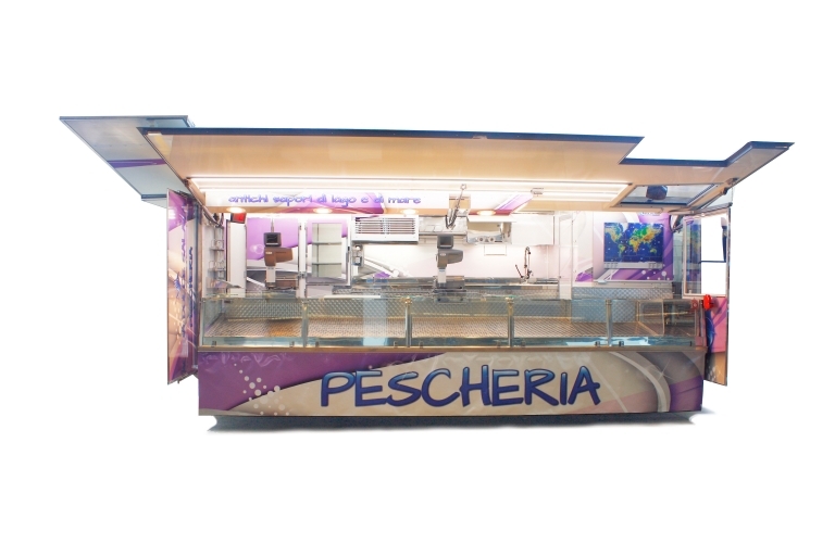 Réalisation camion magasin intégral de 7,5 tonnes utilisé comme poissonnerie pour poisson cru.
