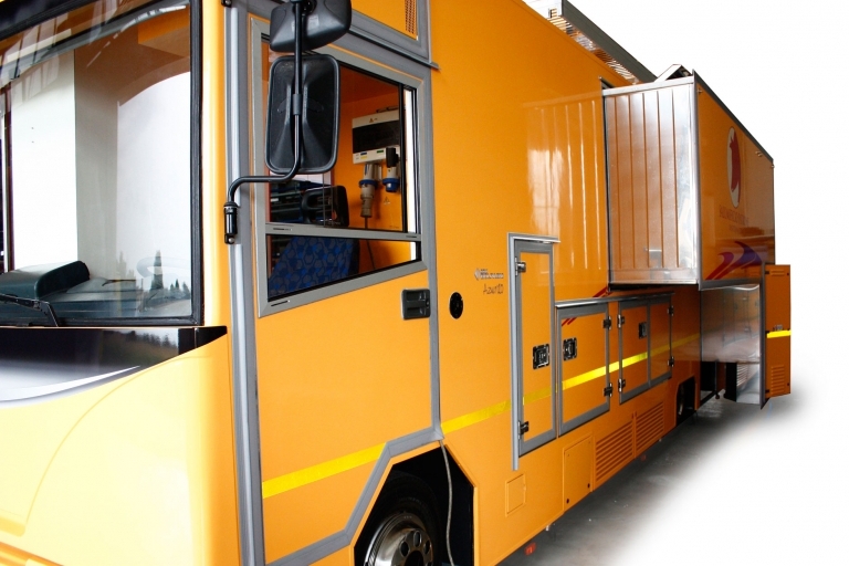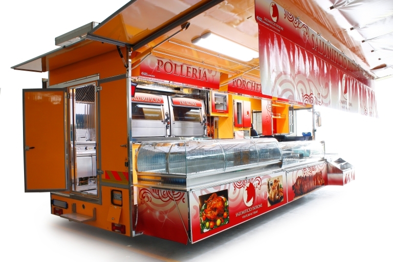 Réalisation camion magasin intégral de 12 tonnes utilisé comme rôtisserie.