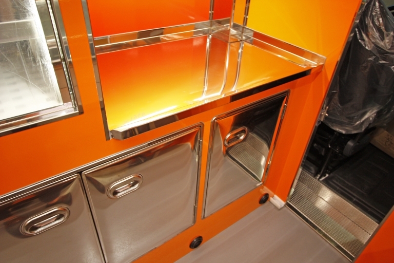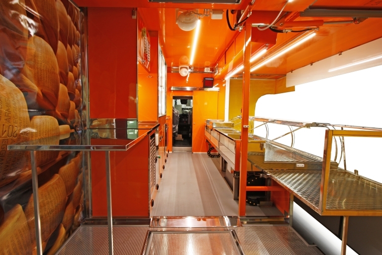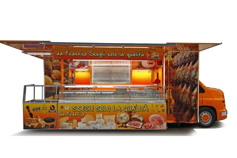 Réalisation camion magasin chassis-cabine "L'Americano" de 3,5 tonnes utilisé pour la vente de charcuteries et fromages.